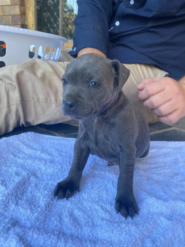 Beautiful purebred blue english staffy pups for sale. Will be ready for there new homes on the 8 of october. Staffy jack puppies for sale born 26 08 2020 ready to leave after 21st october will be up to date with worming and microchipped mum and dad can both be seen mum is staff dad is jack russell are nice chunky puppies 3 males 1 female update only age age. I m happy for any one to come and view the pups and parents.
